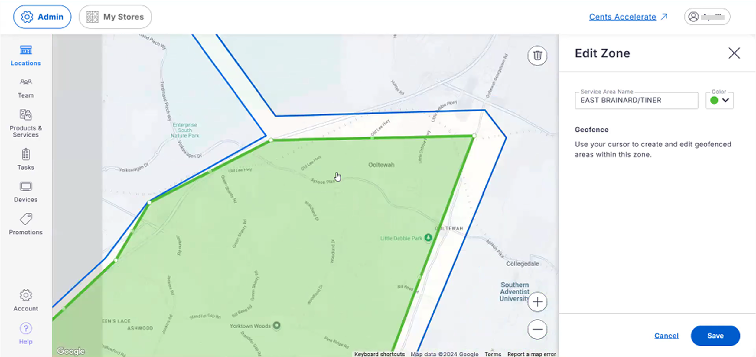 Cents is the most integrated laundry business management platforms in the industry. Cents Dispatch allows customers to expand their business through pickup & delivery through advanced route management. Geofencing is a location-based technology that creates virtual boundaries of a geographic area.