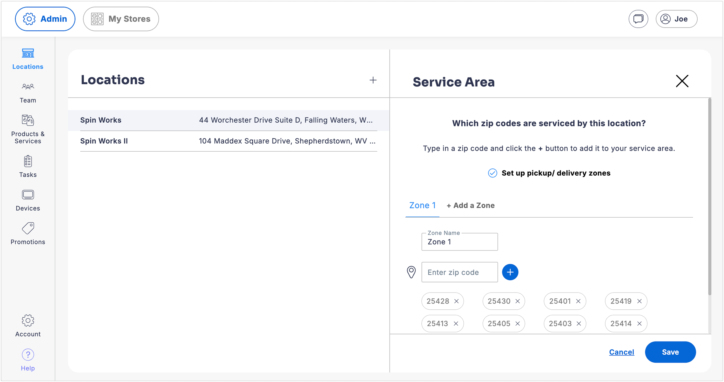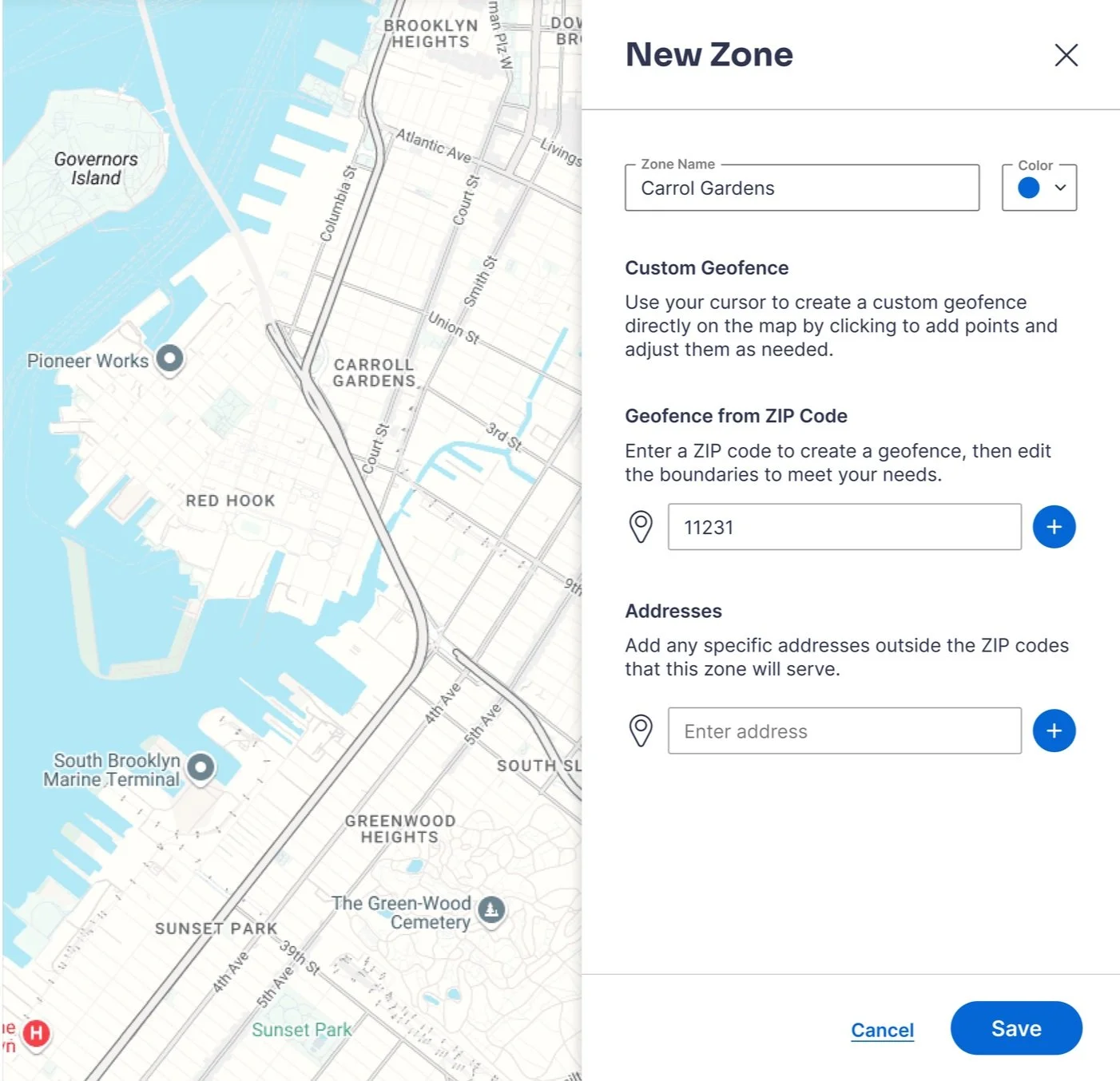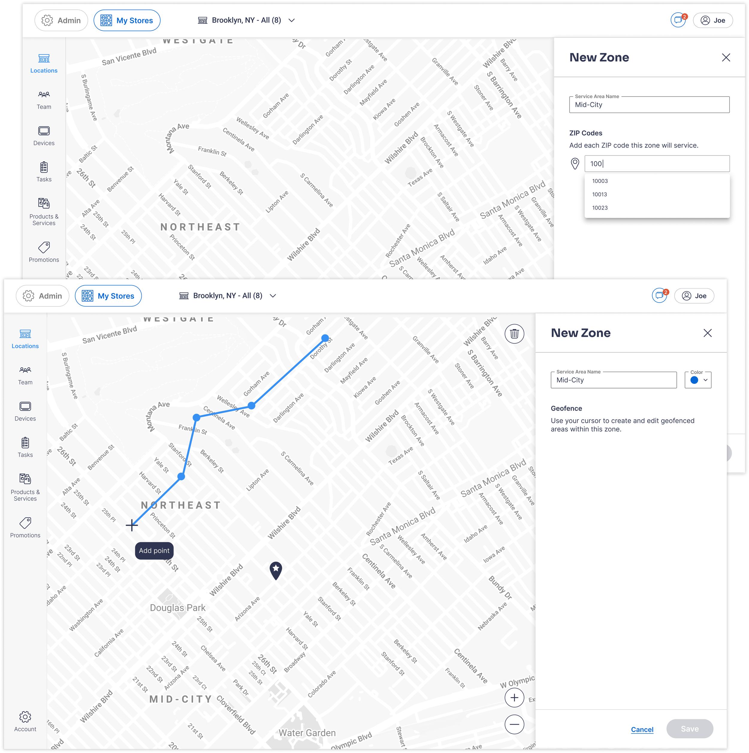 Our first iteration featured a setting to give customers a choice of drawing geofences or simply inputing ZIP codes (as it previously worked).